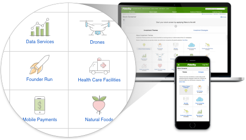 Themes offer a new starting point and way to help pick stocks. Find something that you're familiar with or are interested in exploring more, then with just a few clicks you'll be provided with a list of companies to further research.
